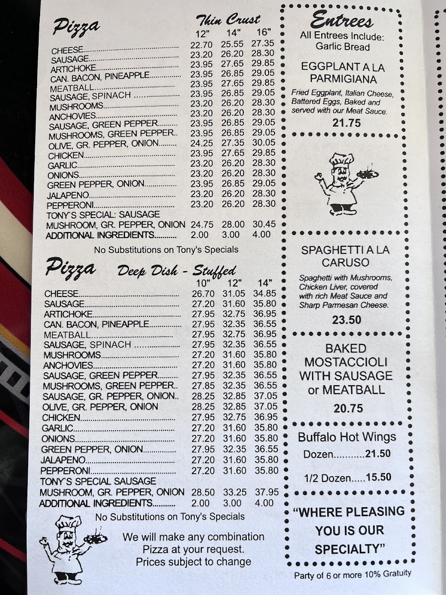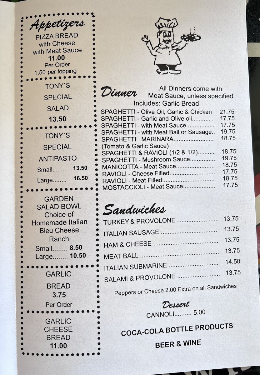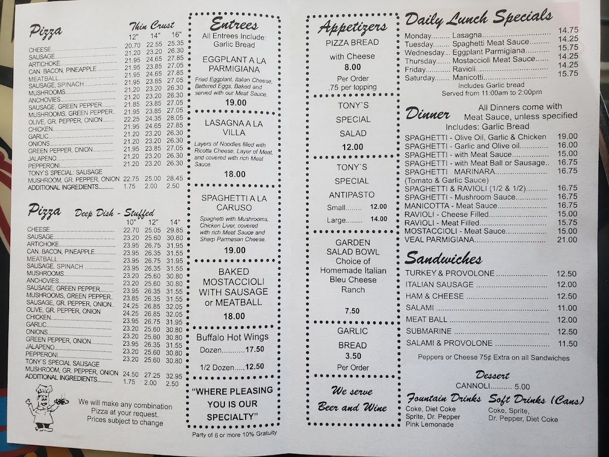 Tony's Little Italy Menu