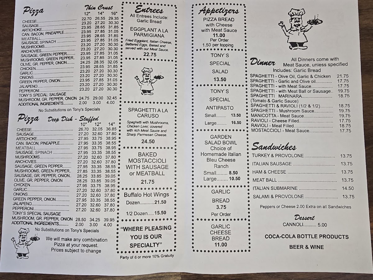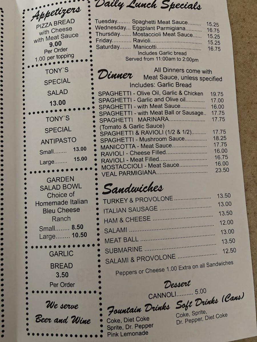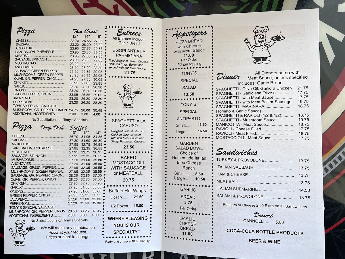Tony's Little Italy Menu